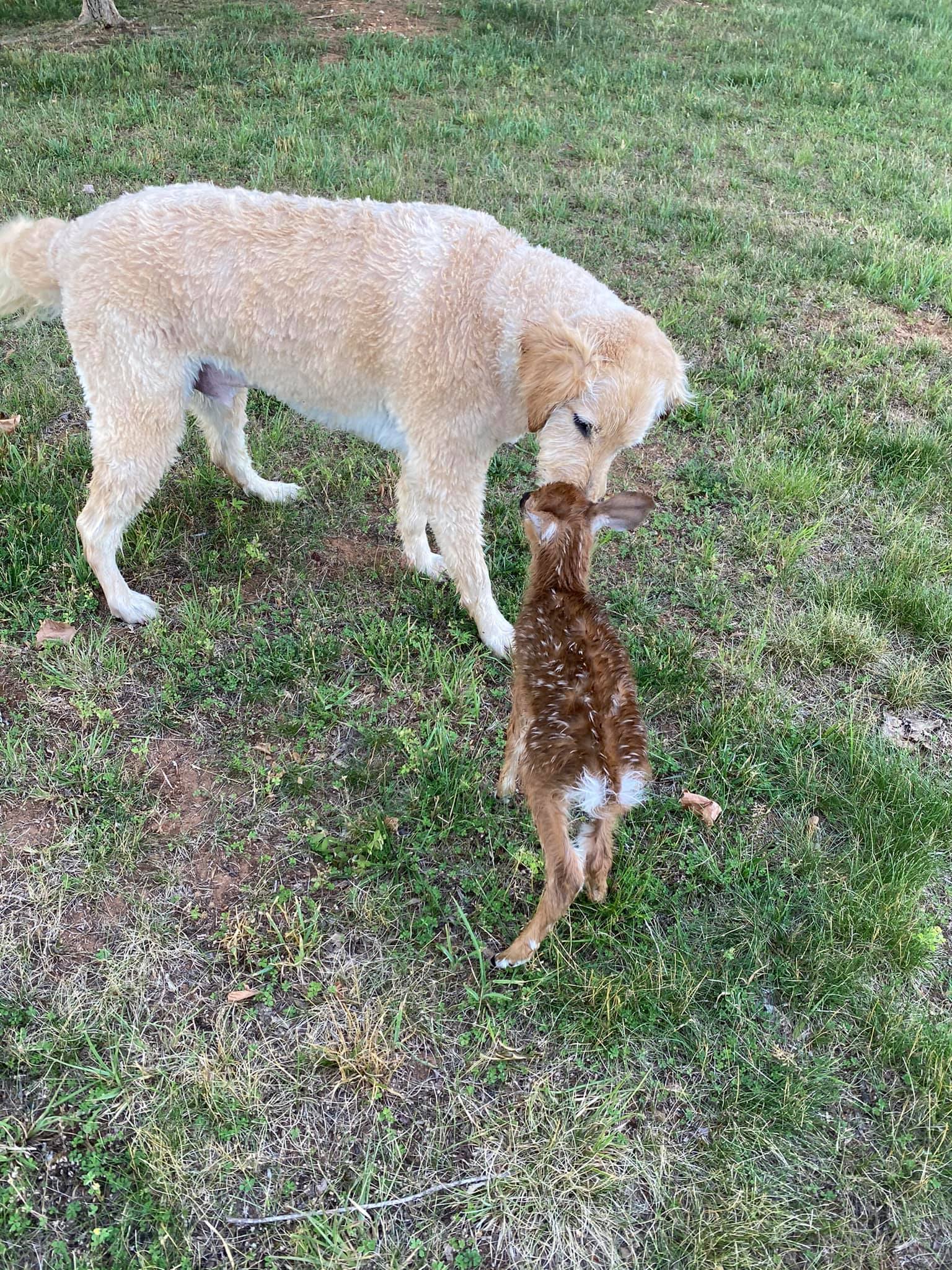 When Ralph Dorn realized his goldendoodle, Harley, was missing, he feared the worst until he spotted him in the middle of a lake. To his surprise, Harley was actually helping a fawn that was struggling in the water.