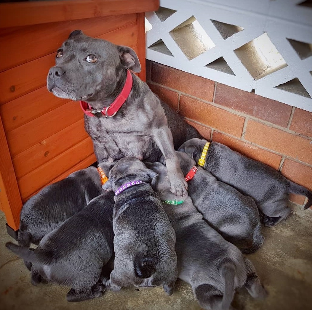 The mother pitbull dog radiates joy as she successfully gives birth to 6 adorable puppies, spreading happiness around to the world
