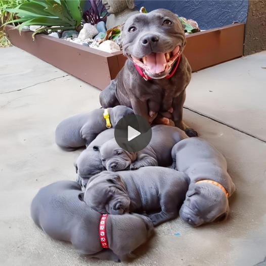 In a heartening spectacle of nature’s wonders, a mother pitbull dog adorned a proud expression as she gracefully welcomed the world to six adorable bundles of joy. The air was filled with an undeniable sense of happiness and anticipation, as the mother dog exuded joy and pride in the wake of this precious moment.