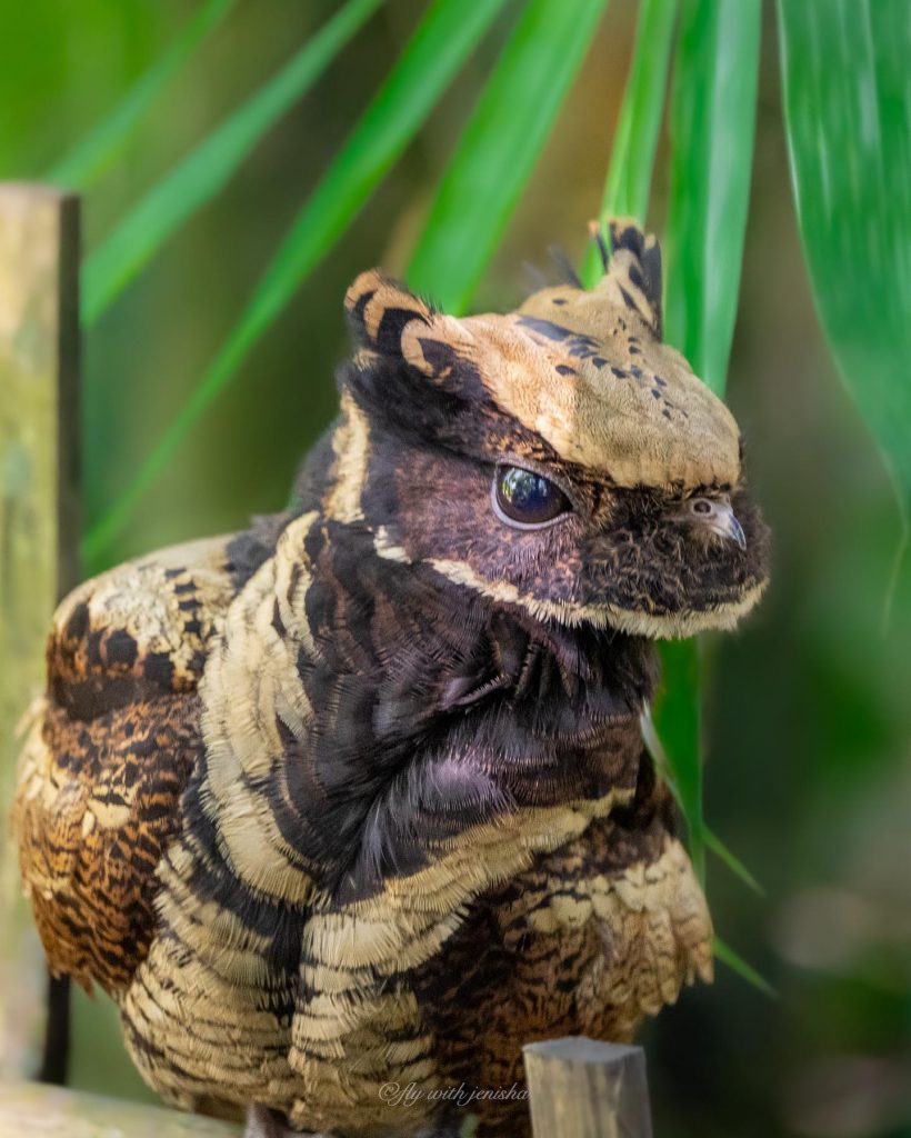 The great eared nightjar is a bird found in the tropical forests of Southeast Asia. These birds are nocturnal and roam through the forest using the darkness as a cover. One thing that makes them unique is the fact that they prepare their nests on the forest floor, allowing their babies to be well-camouflaged due to all the dried leaves. When focusing on their appearance, these birds are dissimilar to other birds.