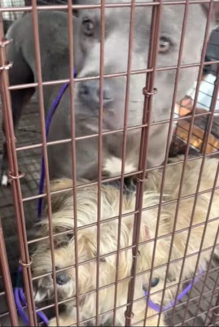 Both dogs are really friendly. The Yorkie’s coat is matted, and the pittie has skin problems. For these two adorable puppies, all of this will one day be just a distant memory.