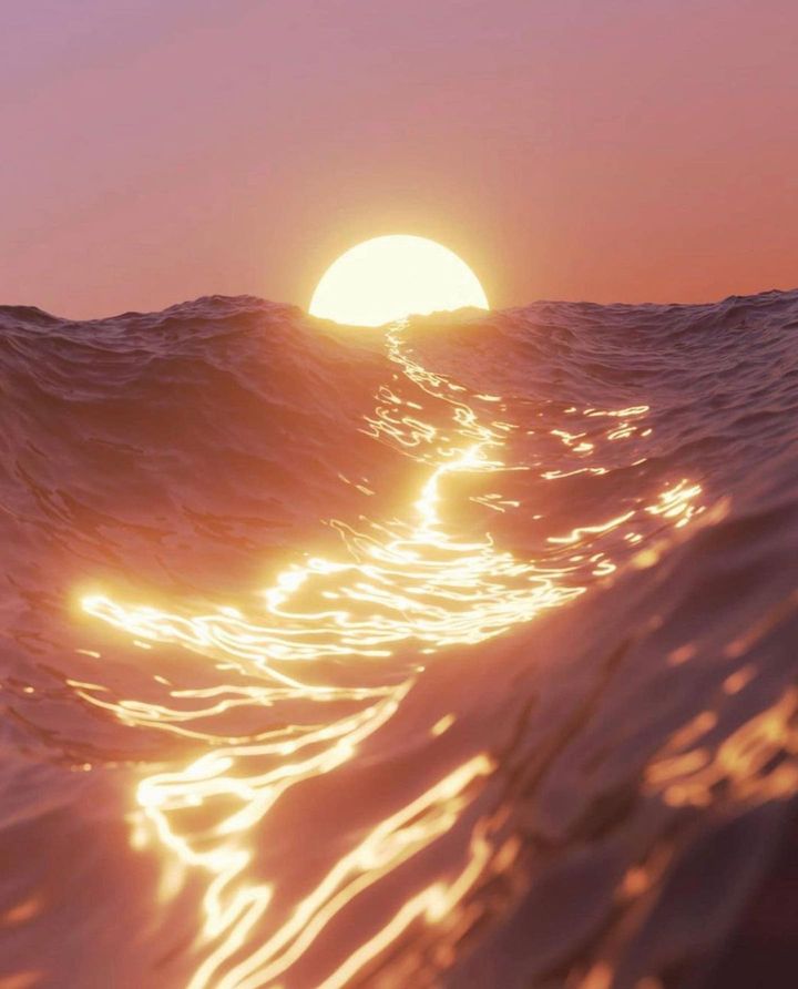 Experience an awe-inspiring sunset over the vast sea, filled with radiant hues that will leave you feeling mesmerized and in wonder.