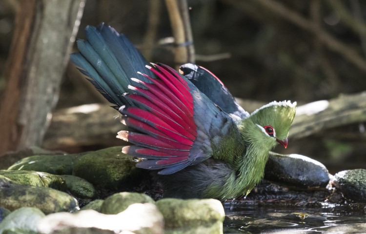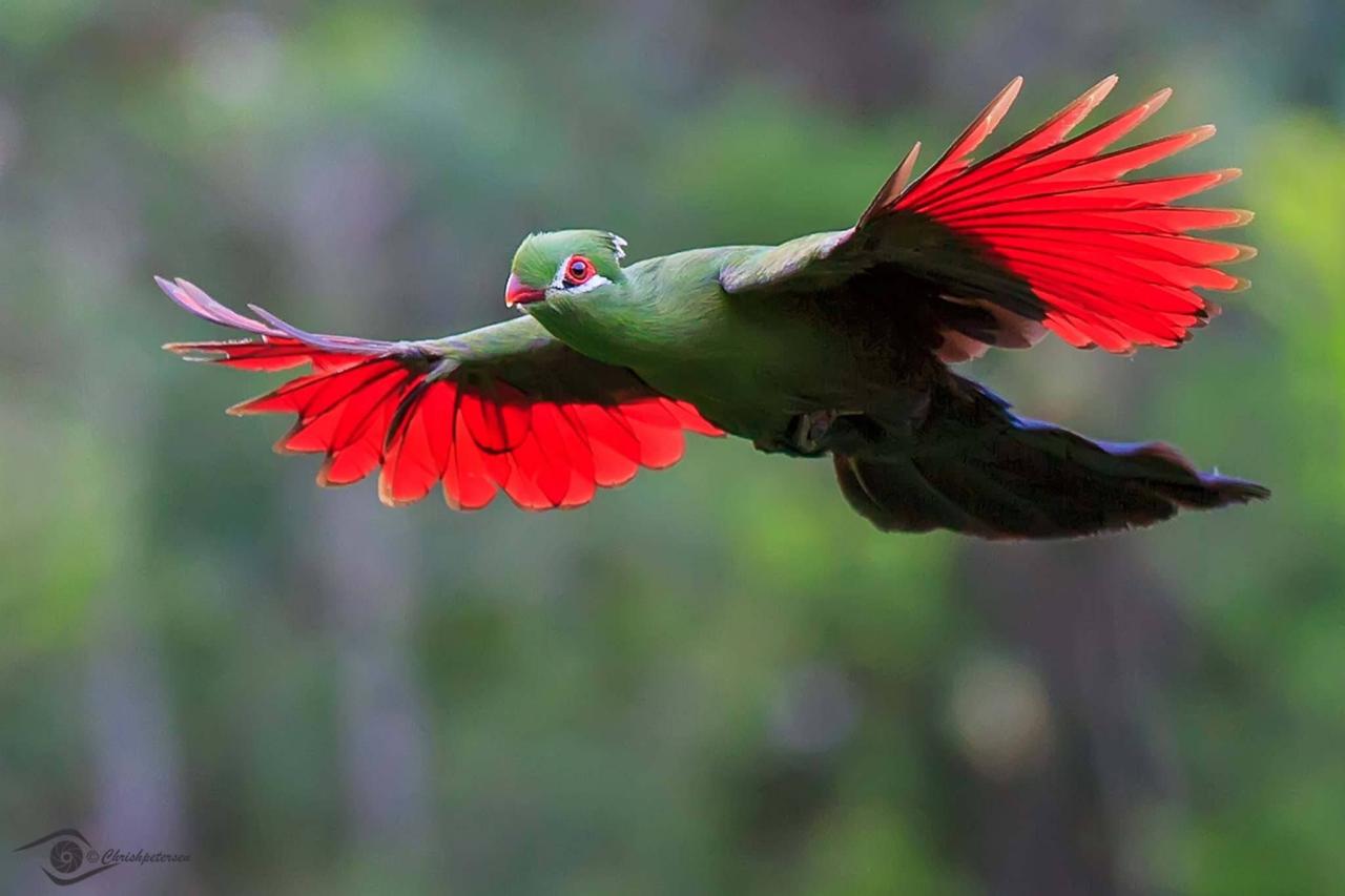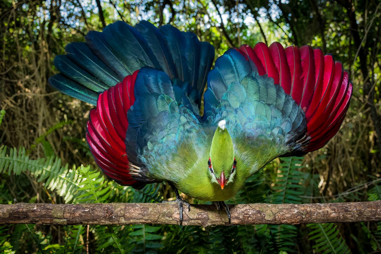 Witness the mesmerizing allure of the Knysna Turaco: a living masterpiece decked in vibrant shades of emerald green and crimson.