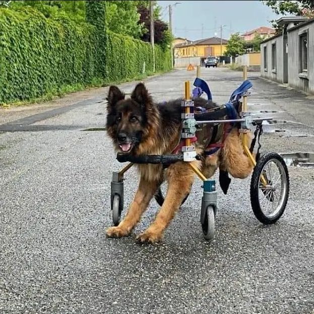 The German shepherd in this narrative once believed he was a cherished member of a family, only to be abandoned when old age and paralysis set in, left behind like unwanted trash when his former owners relocated. Found near Bitonto, Bari, Italy by Gianna Serena Manfredi and other compassionate volunteers from the Qua La Zampa Association, the elderly canine, affectionately named “Heart,” was in a pitiful state with various health issues, including ear and spine problems, as well as hind leg impairments. Despite his ailments, Heart displayed remarkable resilience and determination.