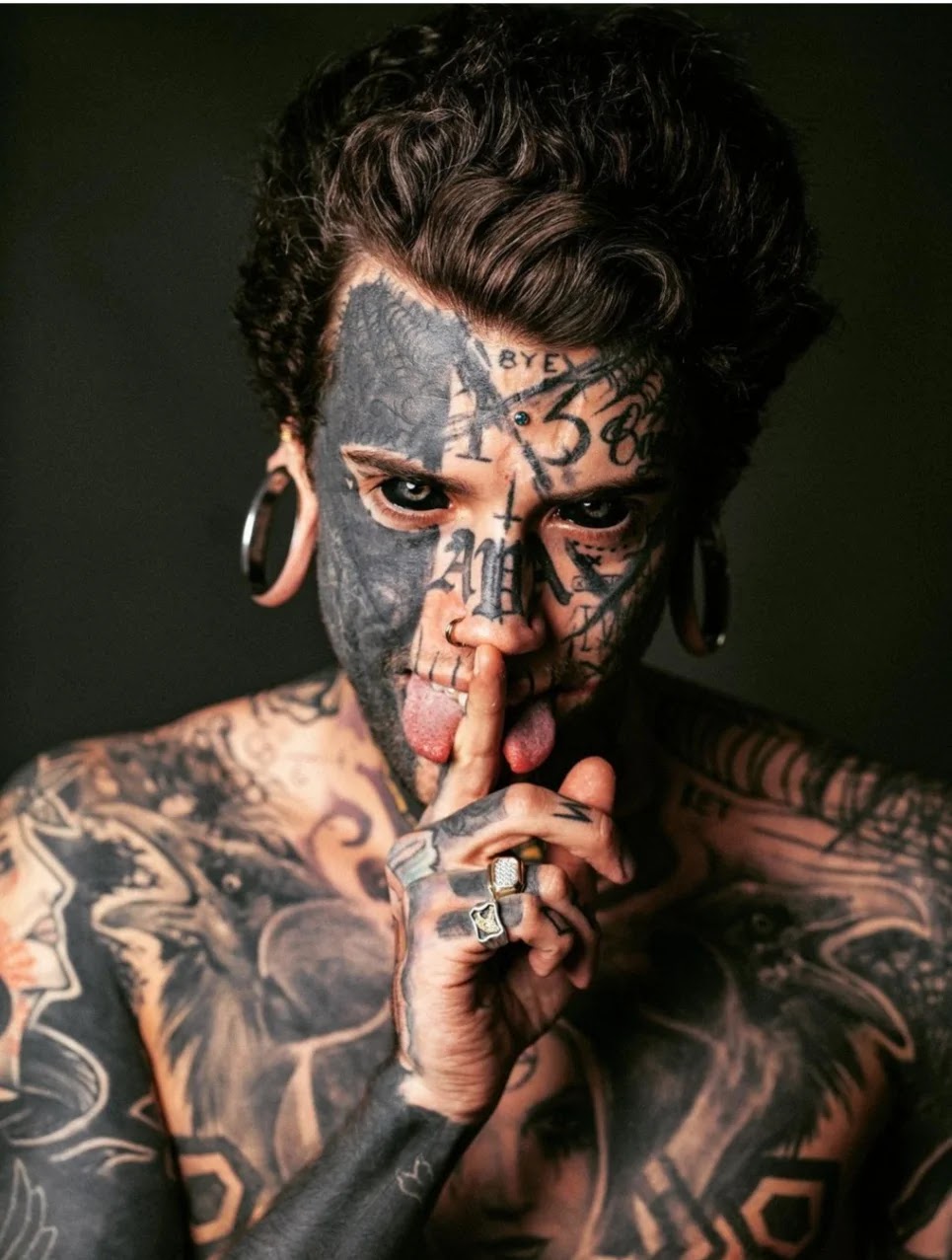 Ethan Modboy Bramble stands out as one of the most well-known bloggers in Australia. At 24 years old, he’s impossible to miss on the street – with a split tongue, modified ears, black eyeballs, enlarged nostrils, a sewn-in navel, and 95% of his body covered in tattoos, he captures the attention of even the most indifferent passersby.