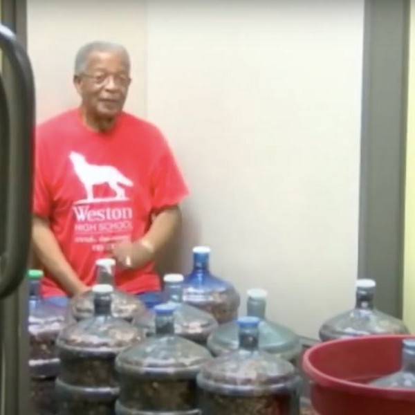 At the time he finally went to the bank, he had filled 15 5-gallon jugs.