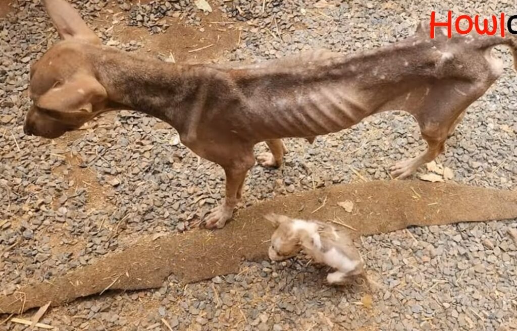 “Mother Dog’s Heartbreaking Plea: A Symphony of Sorrow for Starving Pup’s Survival”