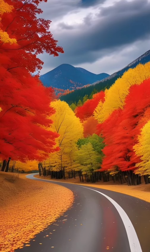 Each tree and shrub proudly showcases its autumn attire, draped in robes of fiery reds, golden yellows, and burnt oranges. The branches sway gracefully, their leaves seemingly ablaze with the essence of the season. As sunlight filters through the foliage, it sets the kaleidoscope of colors aglow, offering a mesmerizing spectacle that captivates the senses.