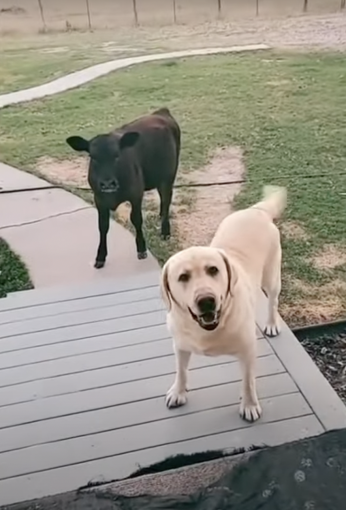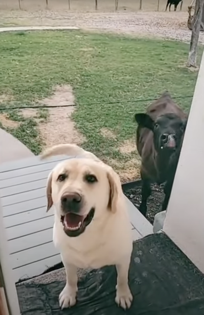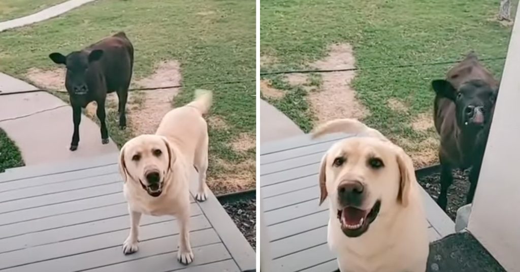 While the baby cow appeared a bit embarrassed by the situation, the Labrador remained persistent in trying to convince his mother to let his new friend stay. With his lovable personality and social nature, it’s clear this pup won’t stop making new connections anytime soon!