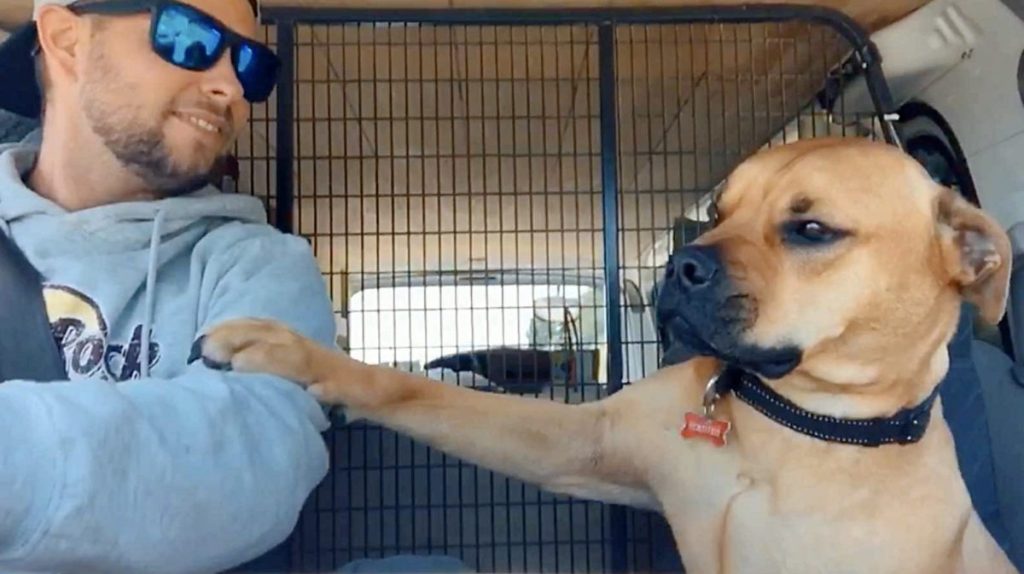 A heartwarming story of a rescue dog named Stanley, who has formed an inseparable bond with his new dad, refusing to let go of his hand in a touching display of love and loyalty.