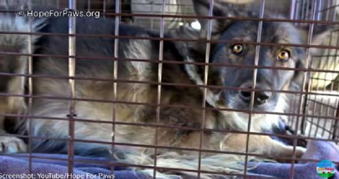 Hope For Paws, an animal rescue in California, received an email about the abandoned dog and drove over two hours to save him.