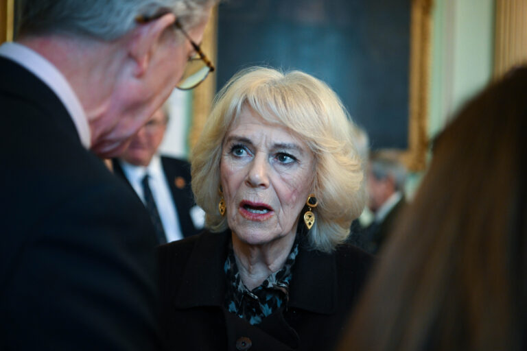 BATH, ENGLAND – JANUARY 25: Camilla, Queen Consort during the visit to the Royal Osteoporosis Society reception at the Guildhall, on January 25, 2023 in Bath, England. (Photo by Finnbarr Webster – WPA Pool/Getty Images)