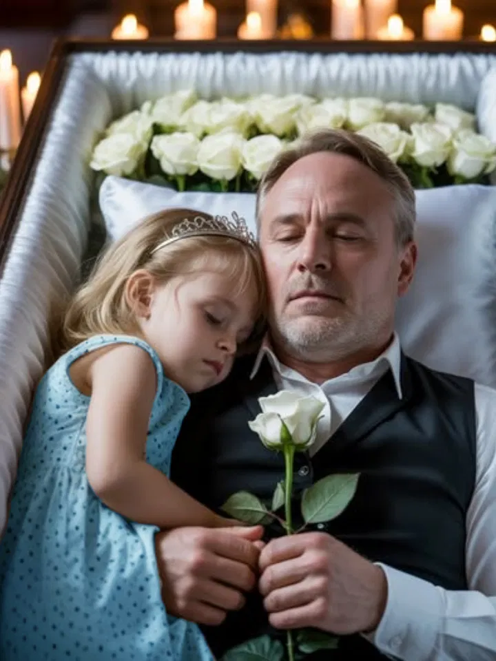 The room was filled with the heavy scent of lilies and the soft murmur of prayers. My little sister didn’t cry or blink—she just stared at our father’s still face, waiting, maybe hoping he’d breathe again.