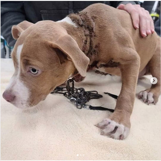 Upon arrival at the shelter, Sage’s resilience and joyful spirit were evident as she wagged her tail, despite the pain and suffering she had endured. The first step in her recovery was the removal of the painful chain, a symbol of the abuse she had suffered.