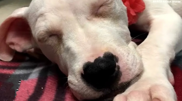 Meesha, a stray dog rescued by volunteers at the BARCS Animal Shelter in Baltimore, underwent necessary treatment after being examined for health issues.